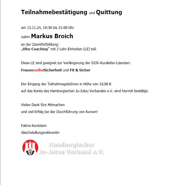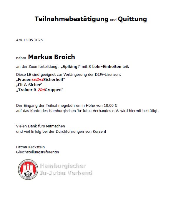 Hier ist eine kleine Übersicht der von mir besuchten Lehrgänge und Weiterbildungen der letzten Jahre: